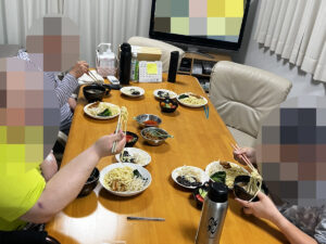クレセール屋台☆ ~つけ麺~ 2025年7月22日 最終更新日時 : 2026年1月8日 細田 猛暑が続いておりますが、皆様いかがお過ごしでしょうか。 棟ホームでは恒例となりました「クレール屋台」を実施いたしました。 今回は「つけ麺」です!前回に続き、山勝 角ふじ様よりご提供いただきました! 魚介系の濃厚スープともちもちとした触感の麺が奇跡の融合! 利用者さん達も「おいしいっ!」と言って大変喜んでくれました。 しっかり食べて、しっかり寝て、この暑い夏を乗り切りましょう♪